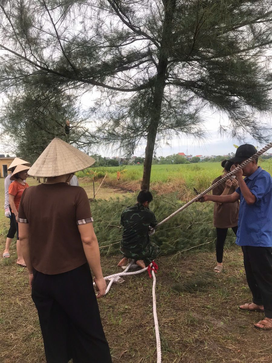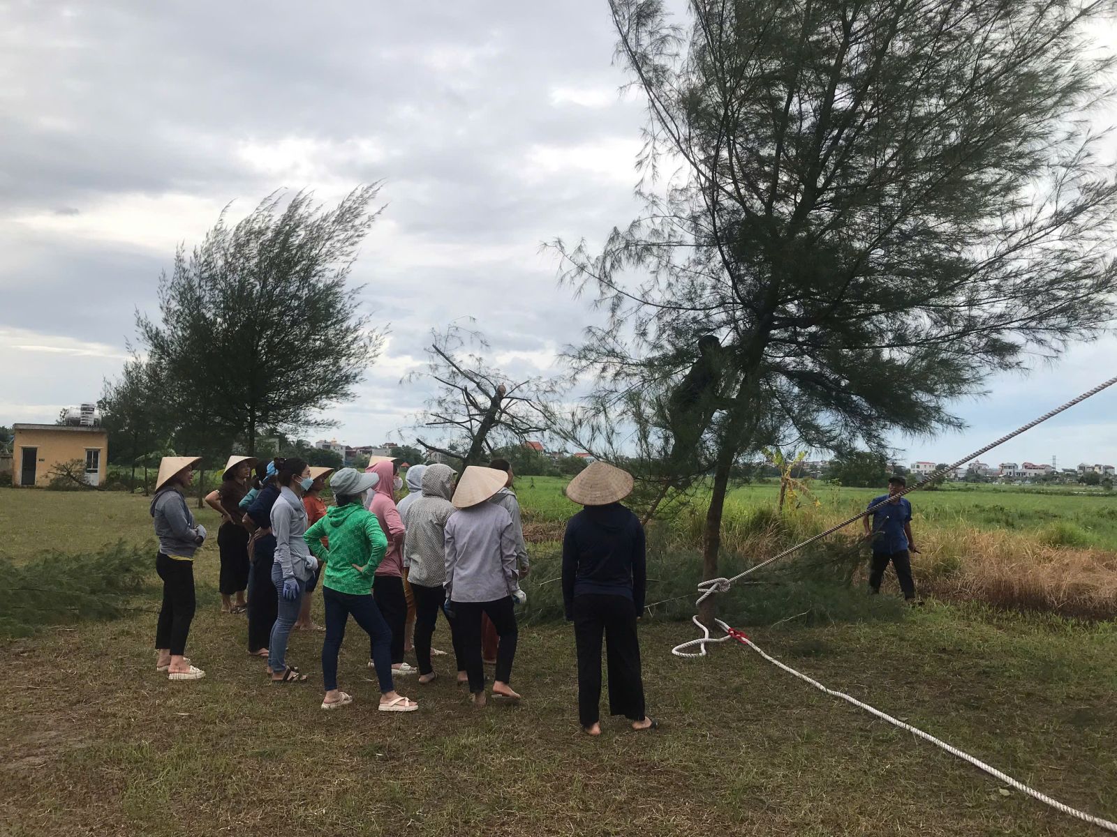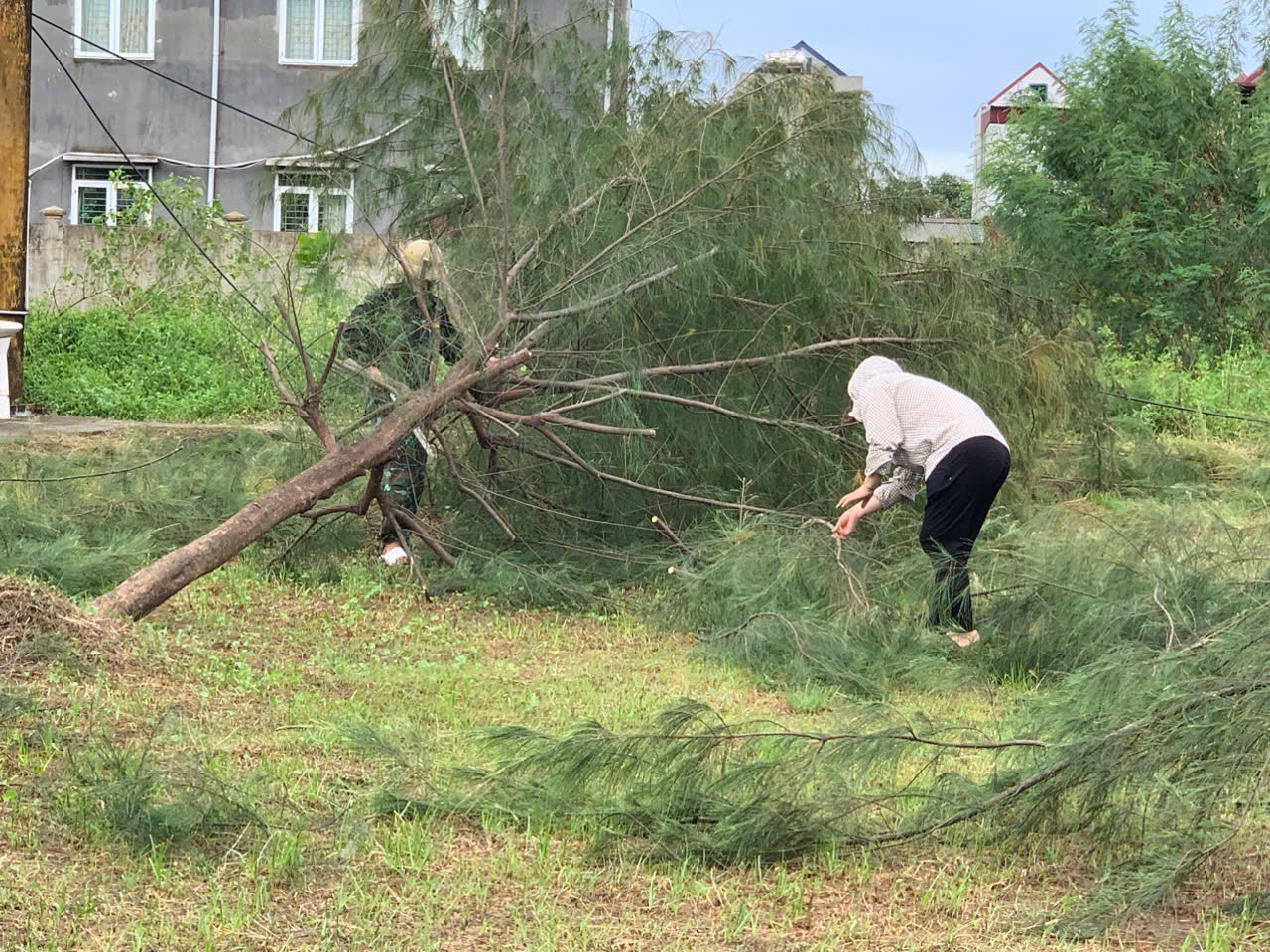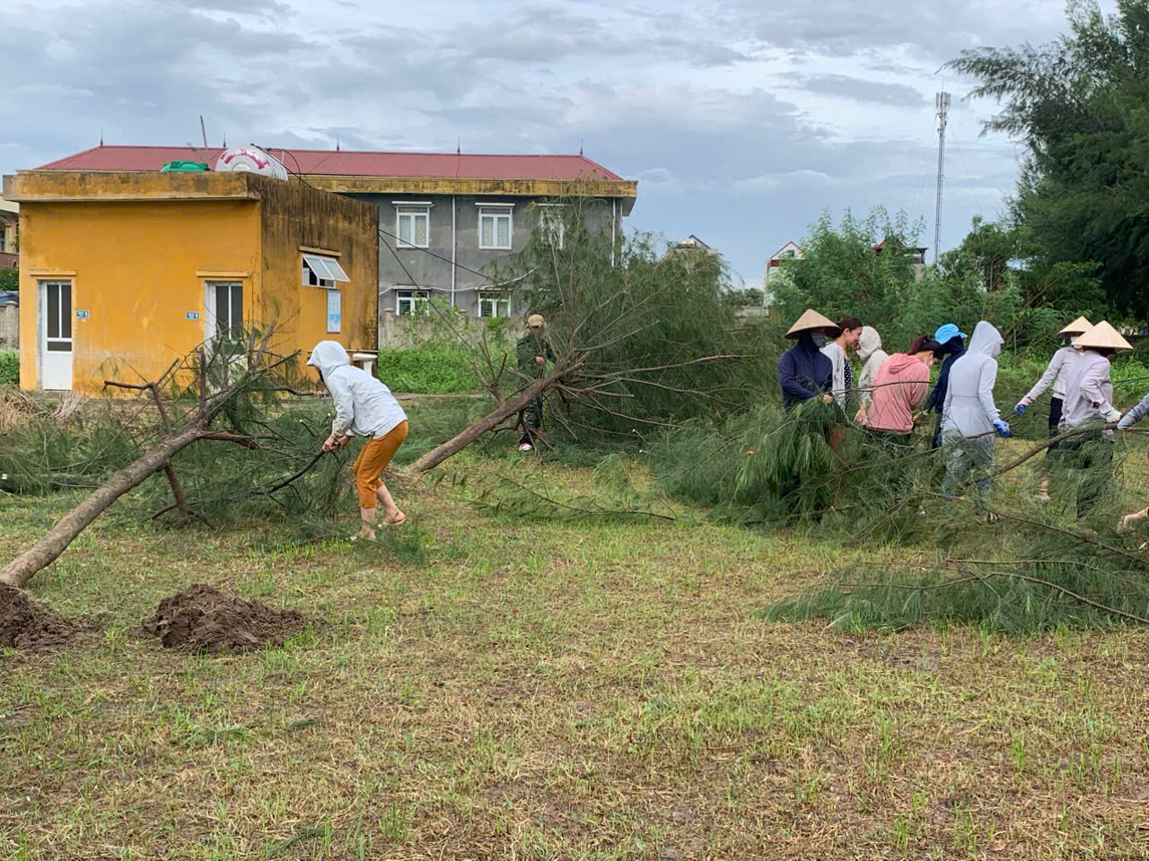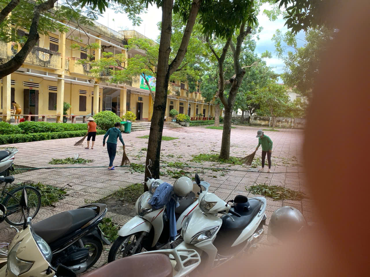 Tập thể trường TH xã Quang Trung khắc phục sự cố sau bão.