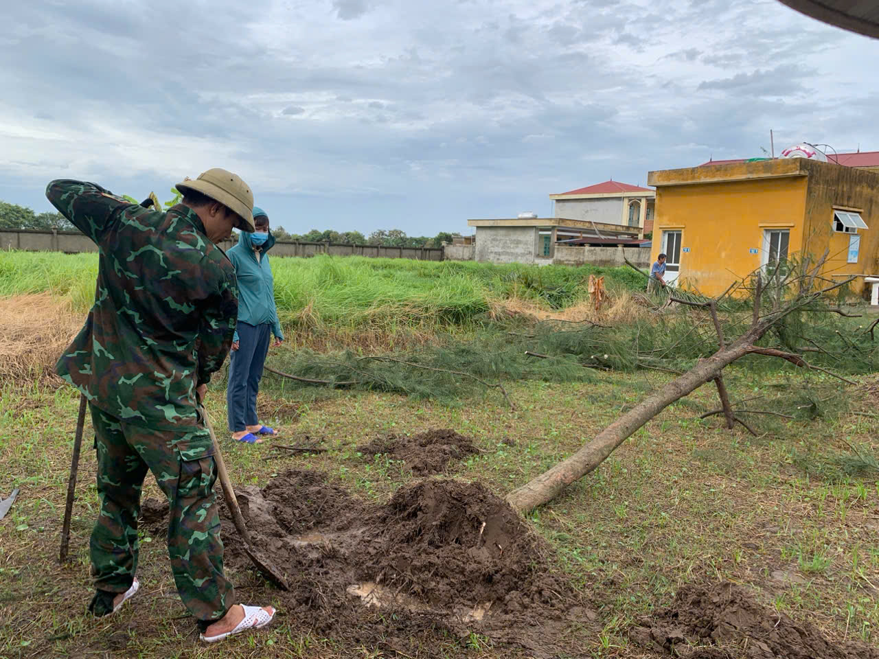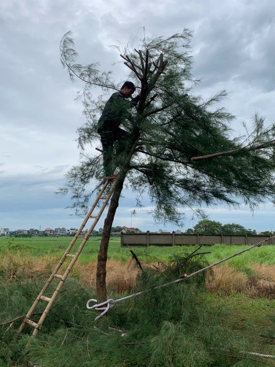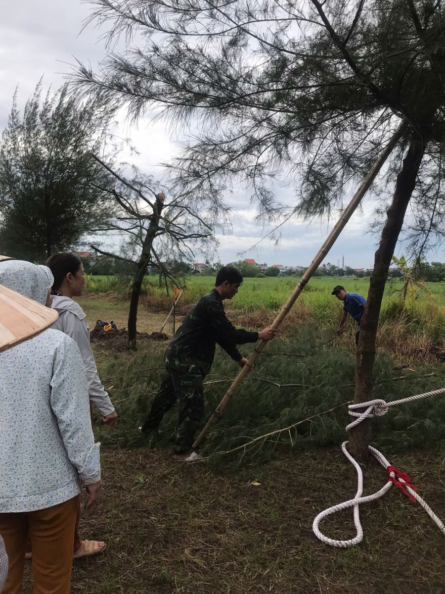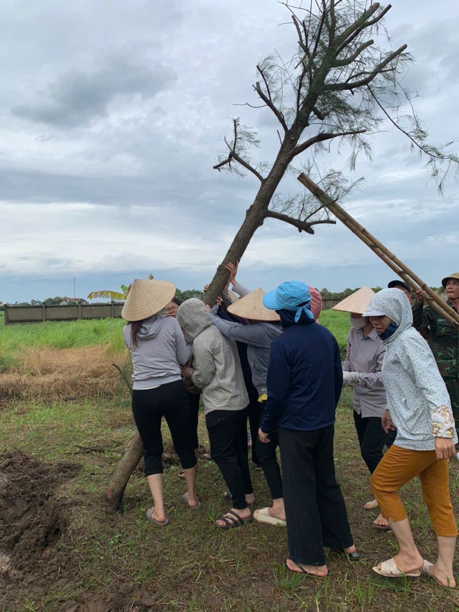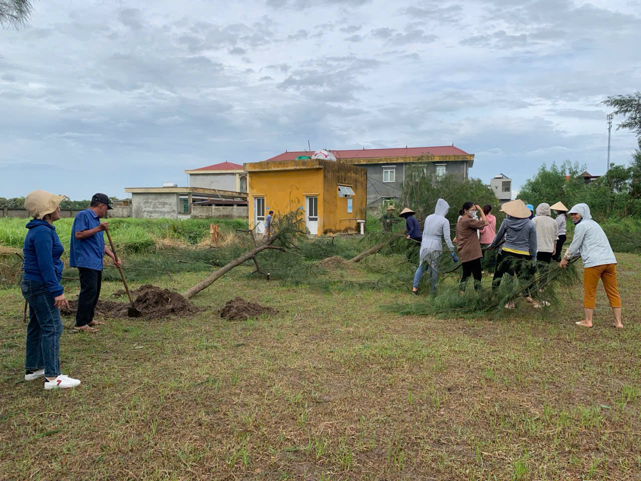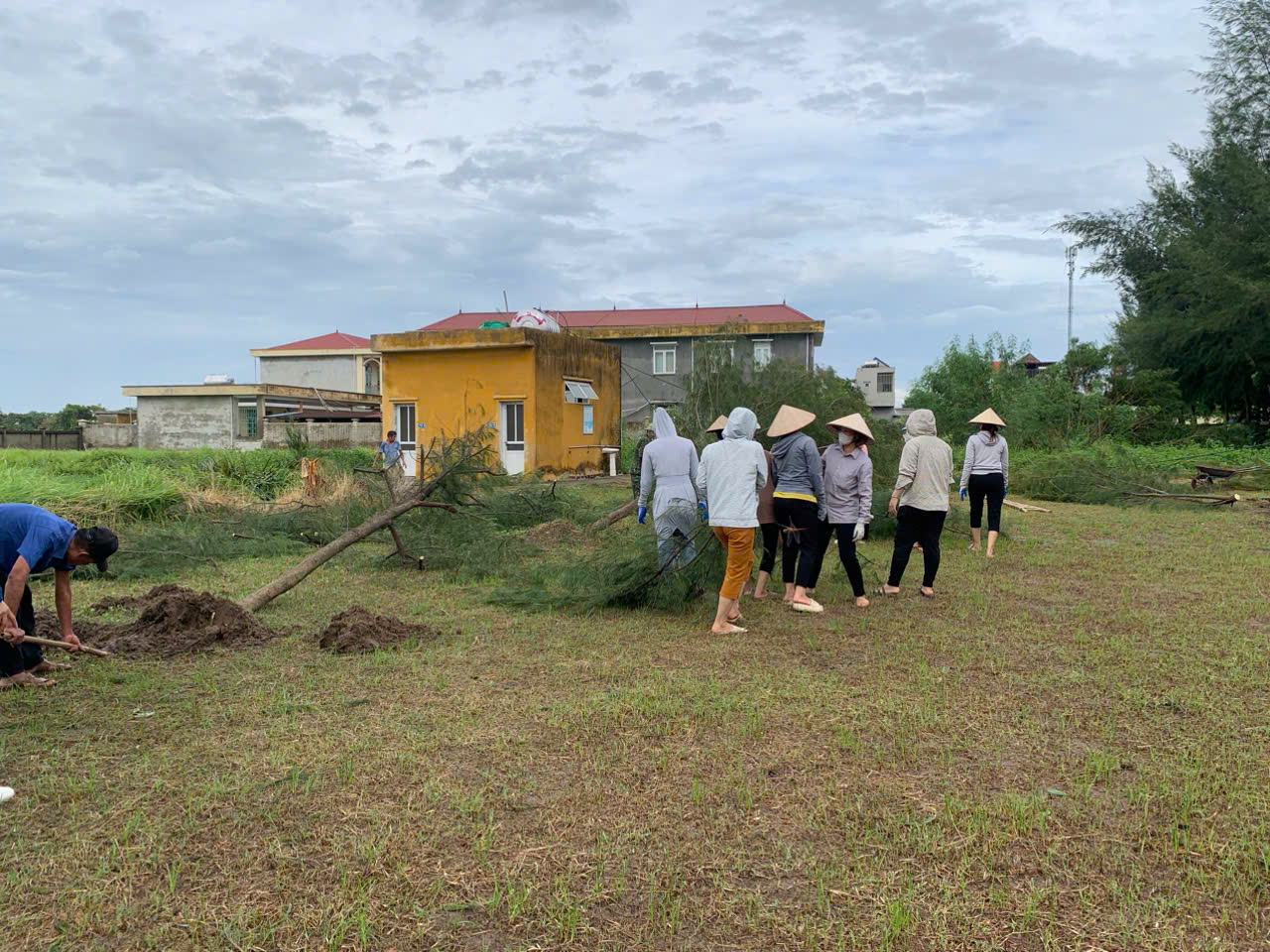 Tập thể trường TH xã Quang Trung khắc phục sự cố sau bão.
