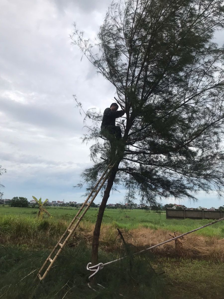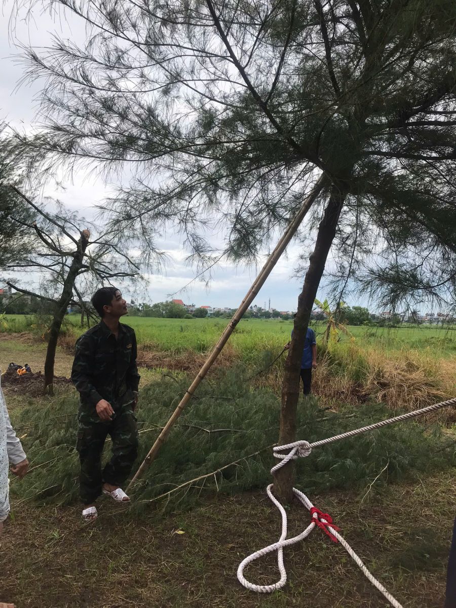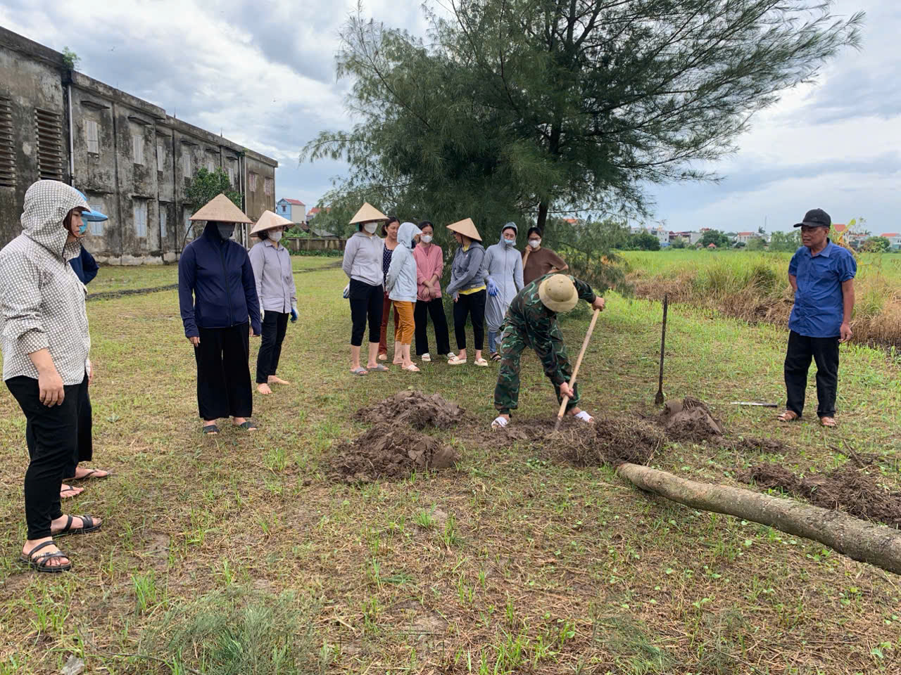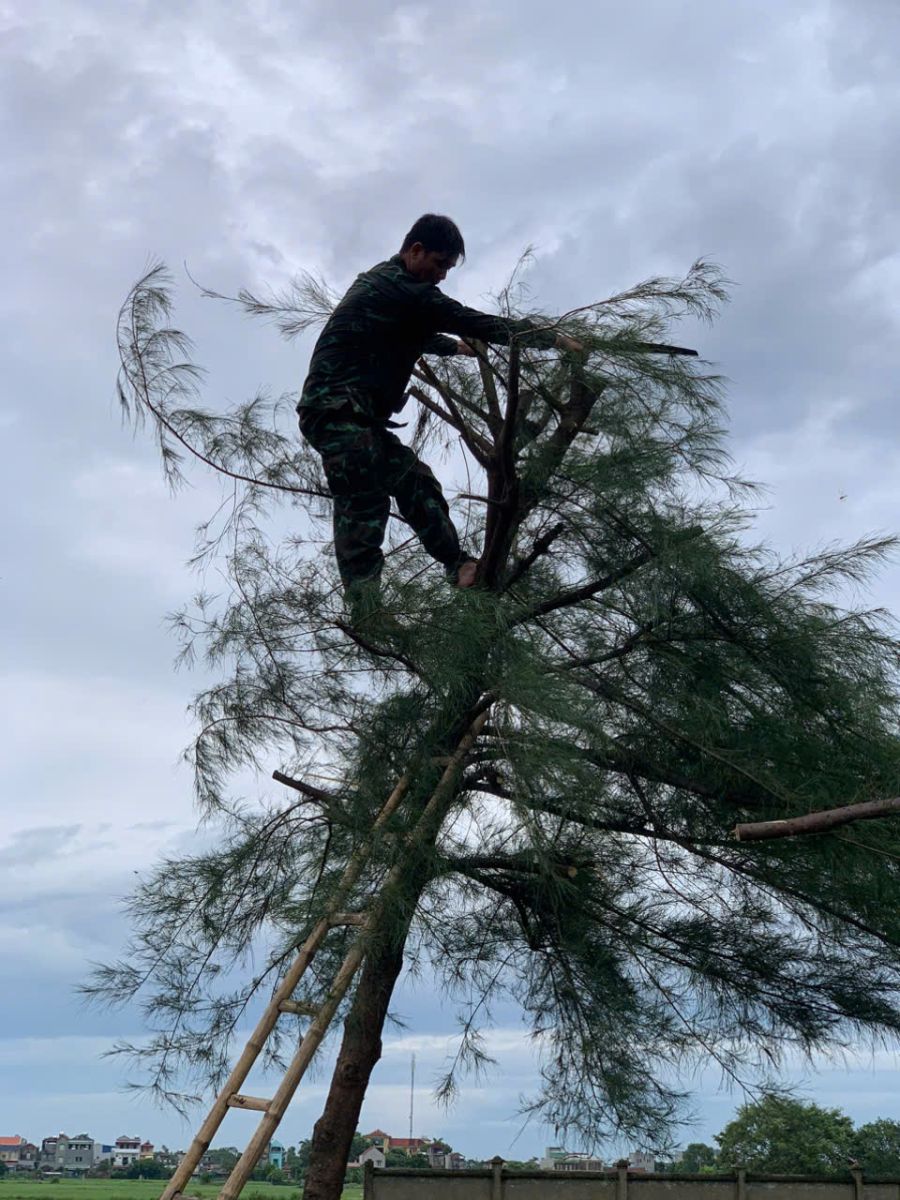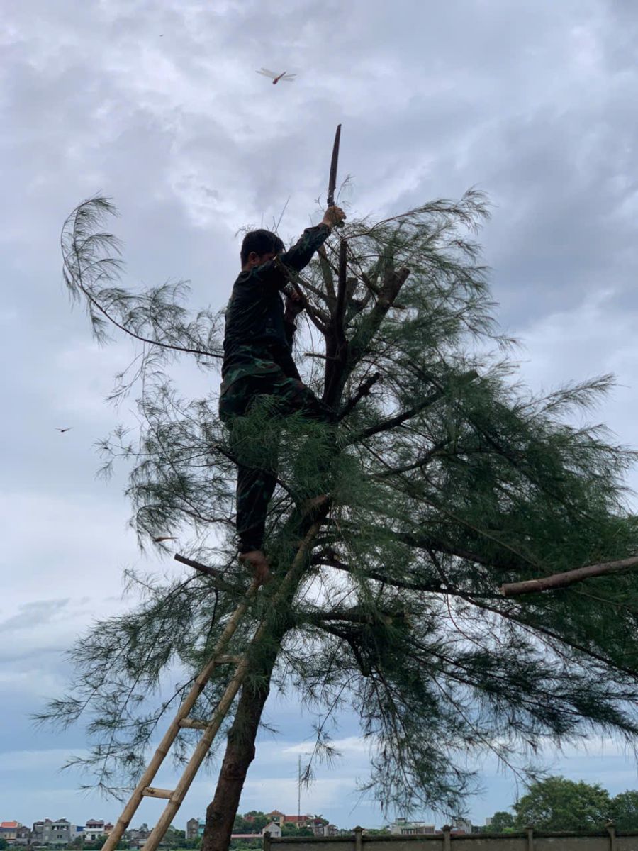Tập thể trường TH xã Quang Trung khắc phục sự cố sau bão.