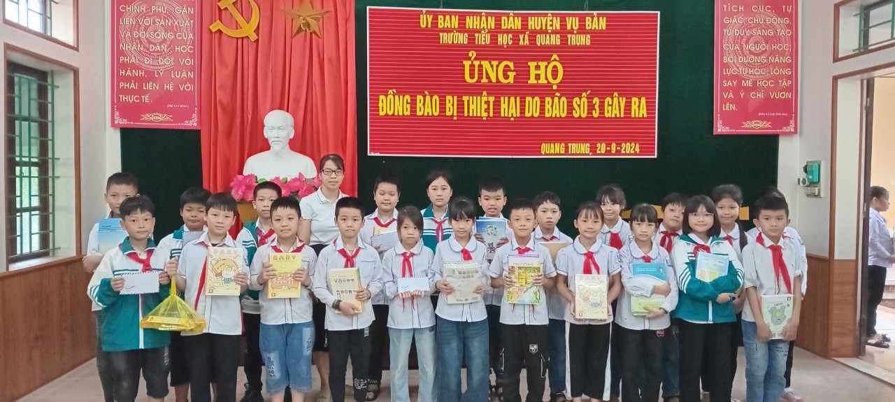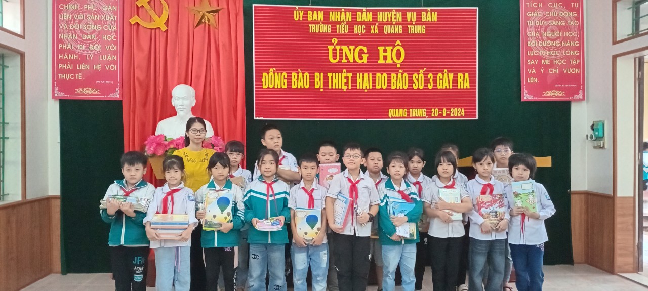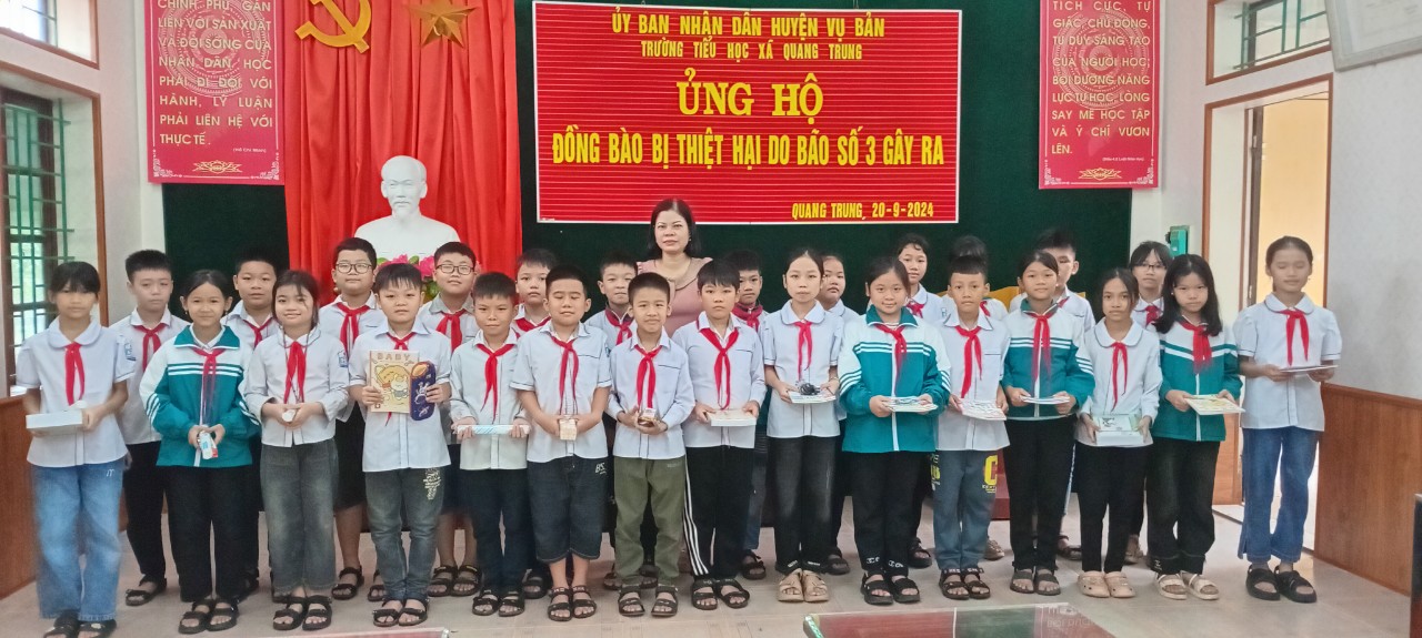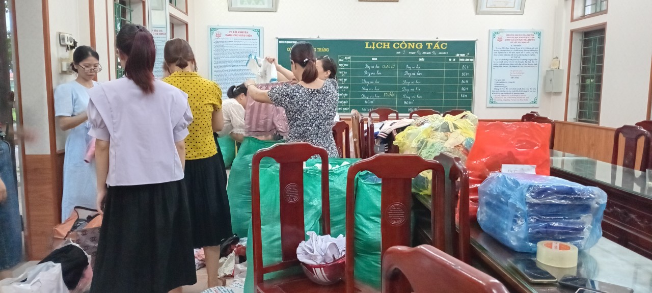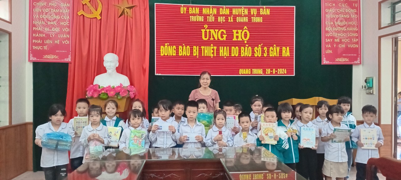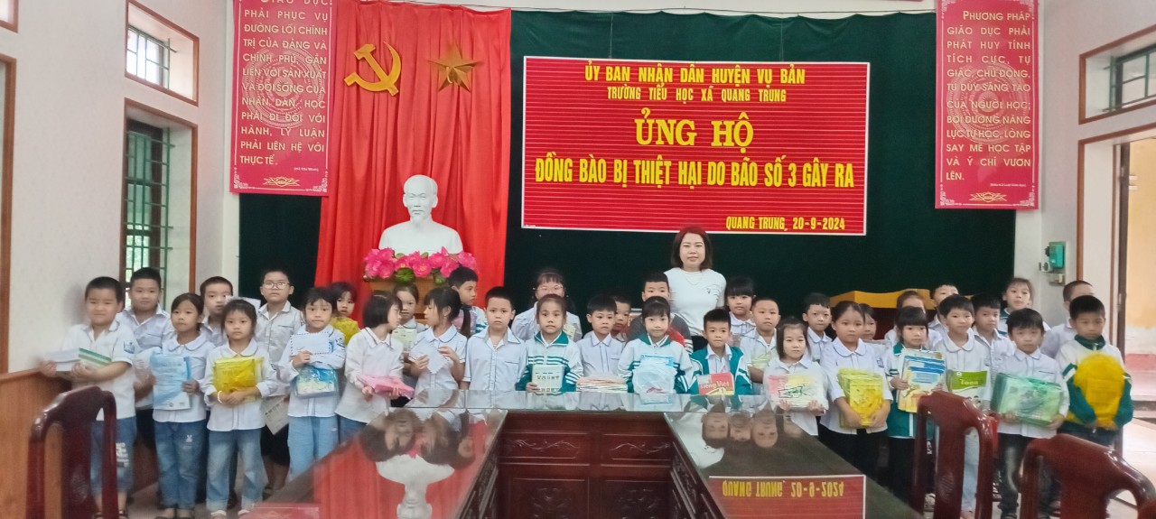 Thầy và trò Trường TH Quang Trung lan tỏa yêu thương tới các bạn HS bị thiệt hại nhiều sau cơn bão số 3.