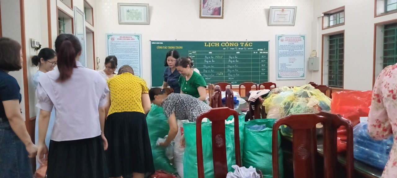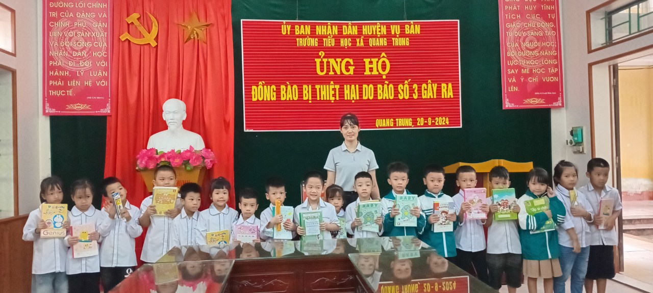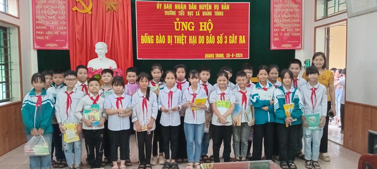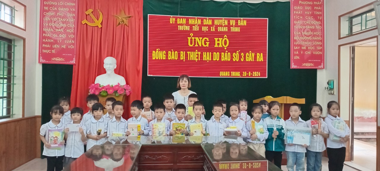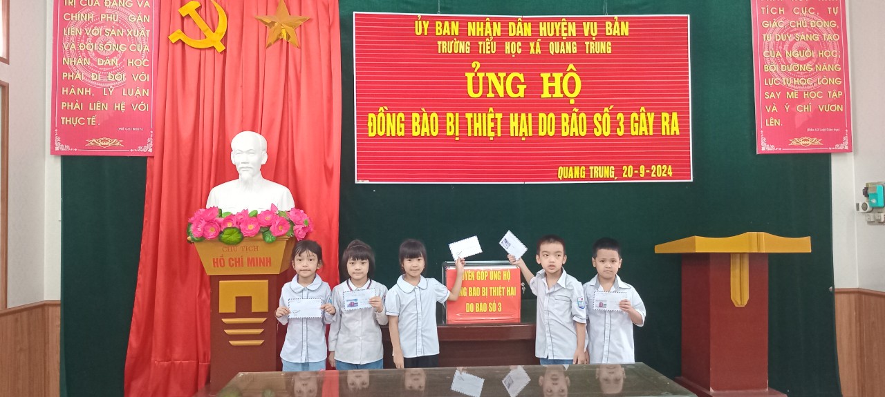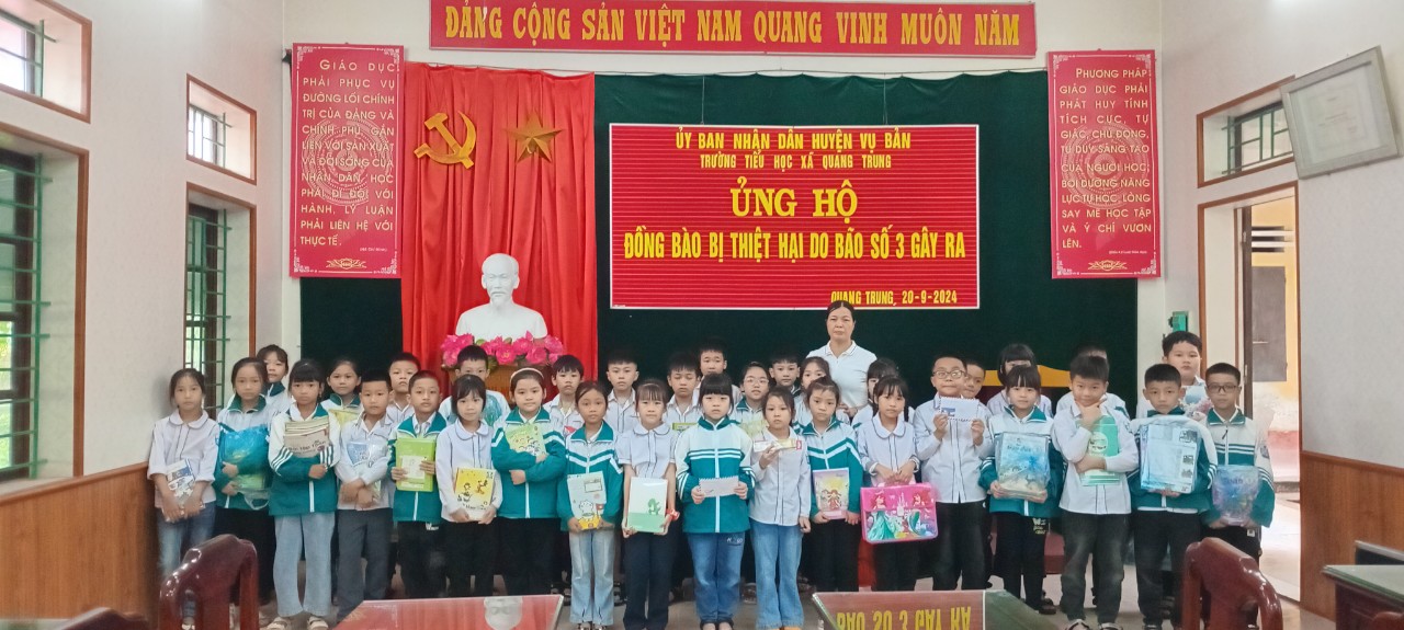 Thầy và trò Trường TH Quang Trung lan tỏa yêu thương tới các bạn HS bị thiệt hại nhiều sau cơn bão số 3.