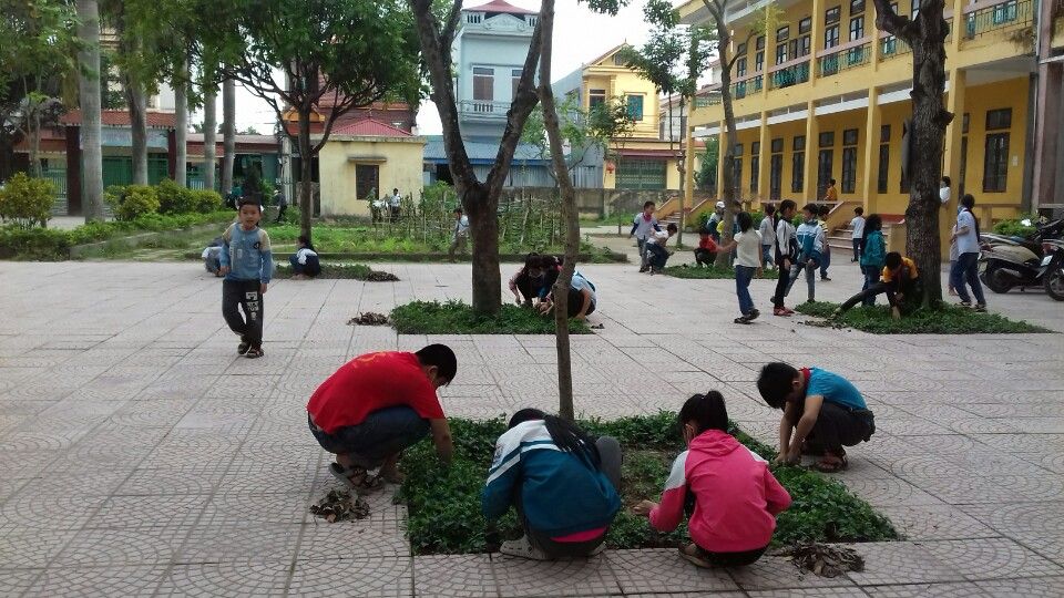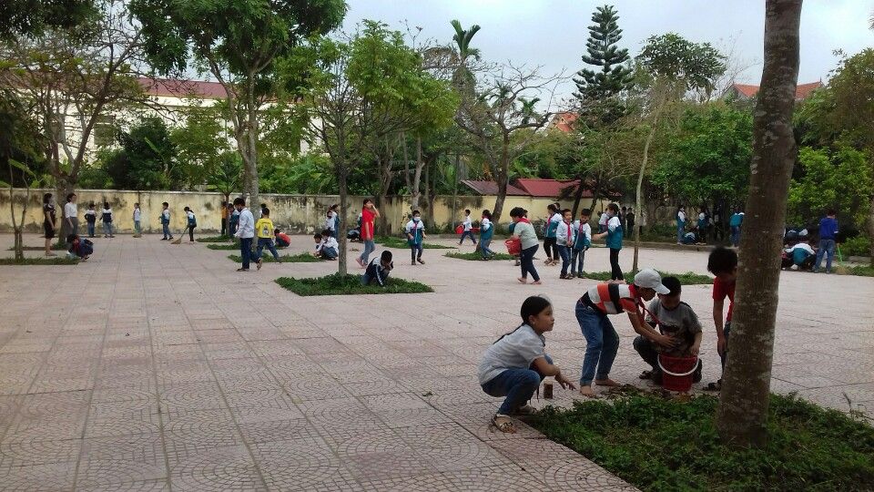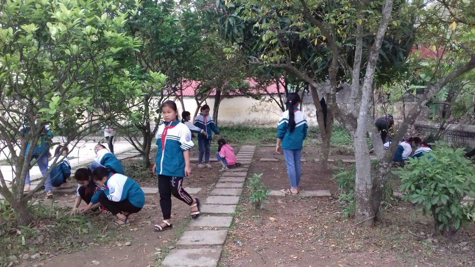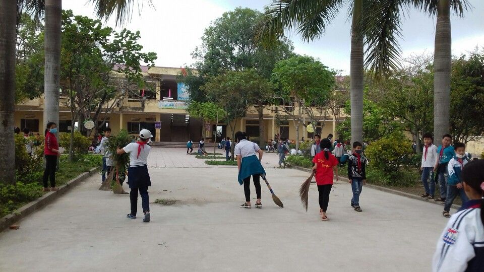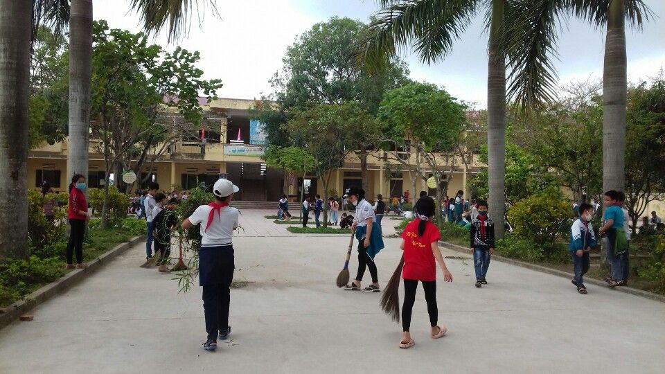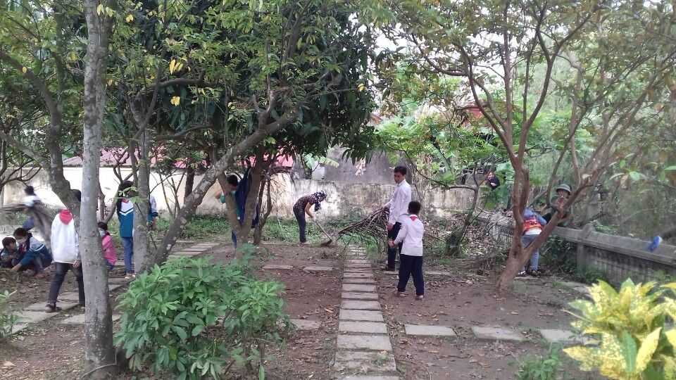 Trường Tiểu học xã Quang Trung vệ sinh trường lớp.