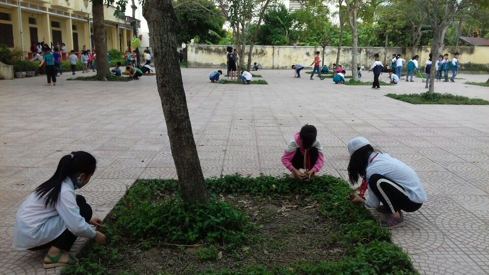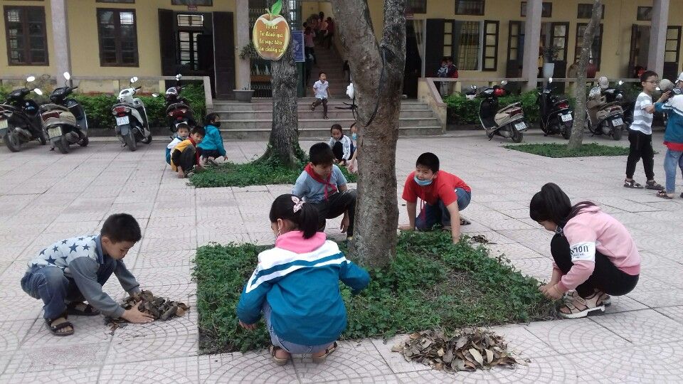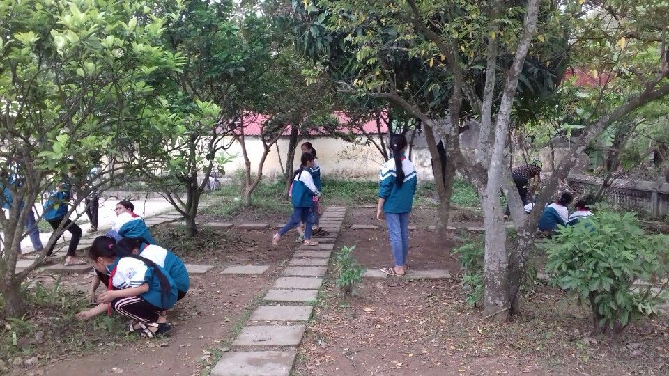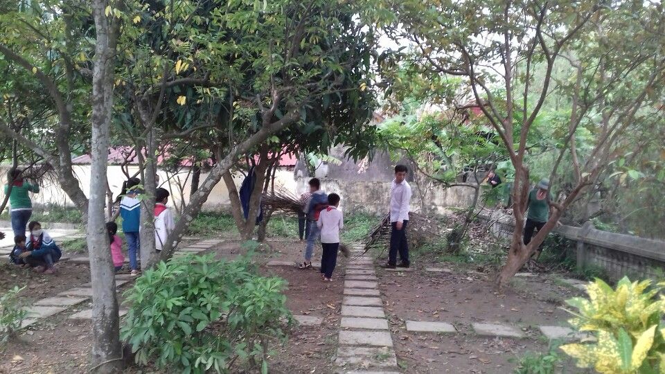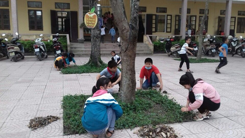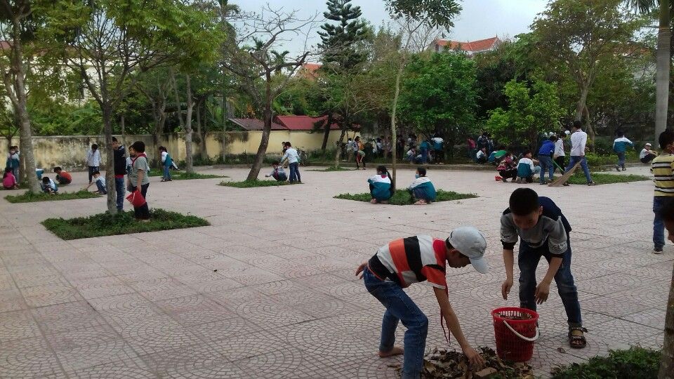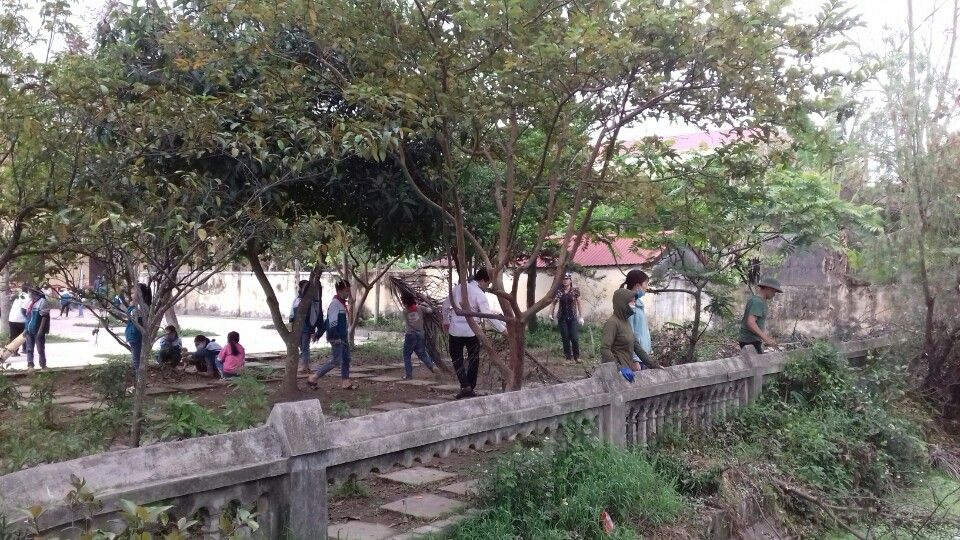Trường Tiểu học xã Quang Trung vệ sinh trường lớp.